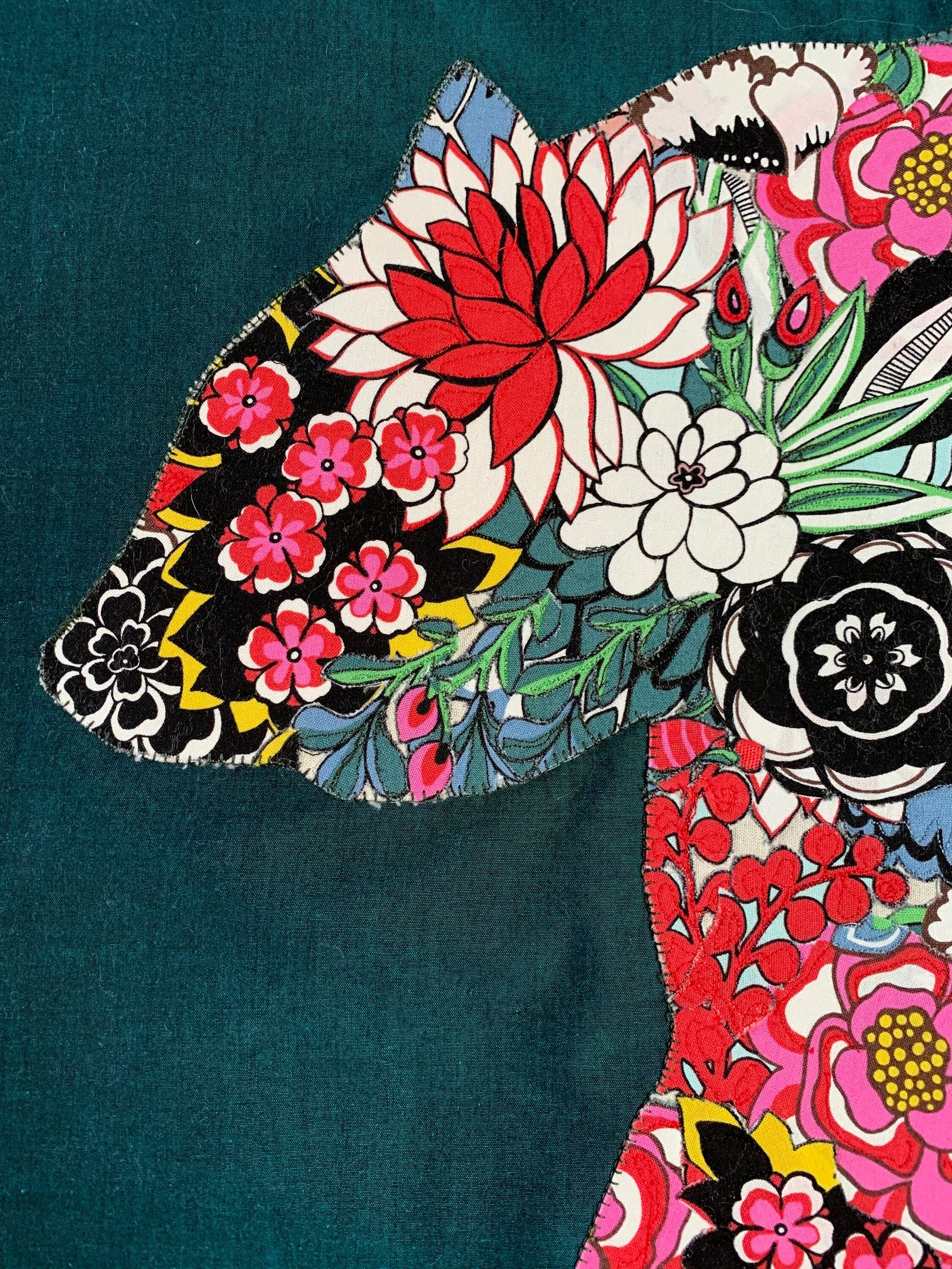 The main color is a rich teal background with multiple vivid flowers creating the bear.
